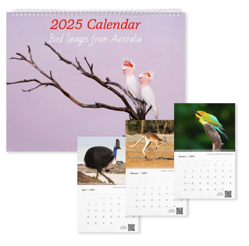 My 2025 calendar, with many never before seen images from a past trip to Australia, is now available. Printed on thick high gloss paper, each month features nature photography of the birds (or mammals) seen in the land down under. Each month also comes with a QR code that points back to an article of the featured critter so that you can learn more about them and where they live.